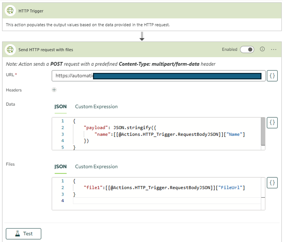 Aktion: HTTP-Anfrage mit Dateien senden