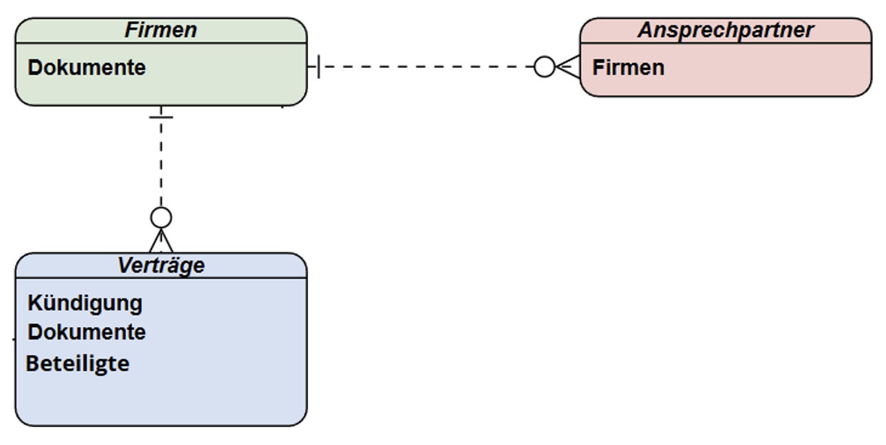 These relationships allow an easy navigation between contracts, companies, and contacts, ensuring that all relevant information is just a few clicks away.