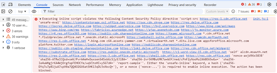 Wenn der Browser einen CSP-Verstoß erkennt, meldet er sich