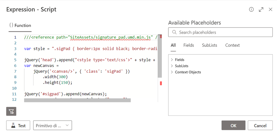 Inline-Skripte in Teamsware-Steuerungen/-ausdrücken