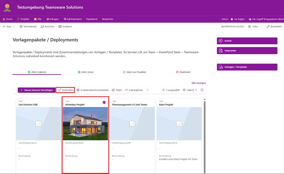 Sie das gewünschte Vorlagenpaket zur Bearbeitung aus.