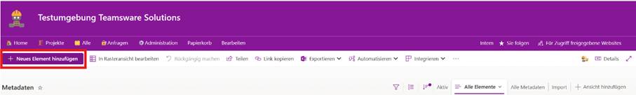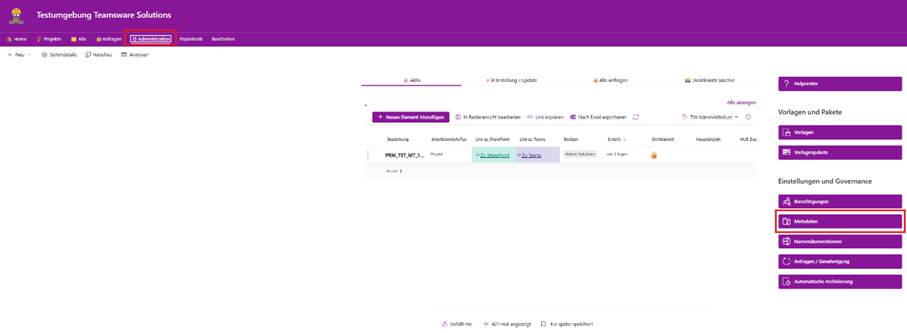 Im Admin-Bereich der Teamsware-Bauakte finden Sie den Button Metadaten. Über diesen Bereich können Sie alle Metadaten verwalten und neue hinzufügen. Metadaten sind besonders wichtig, da sie später in der Namenskonvention verwendet werden. Nur ...