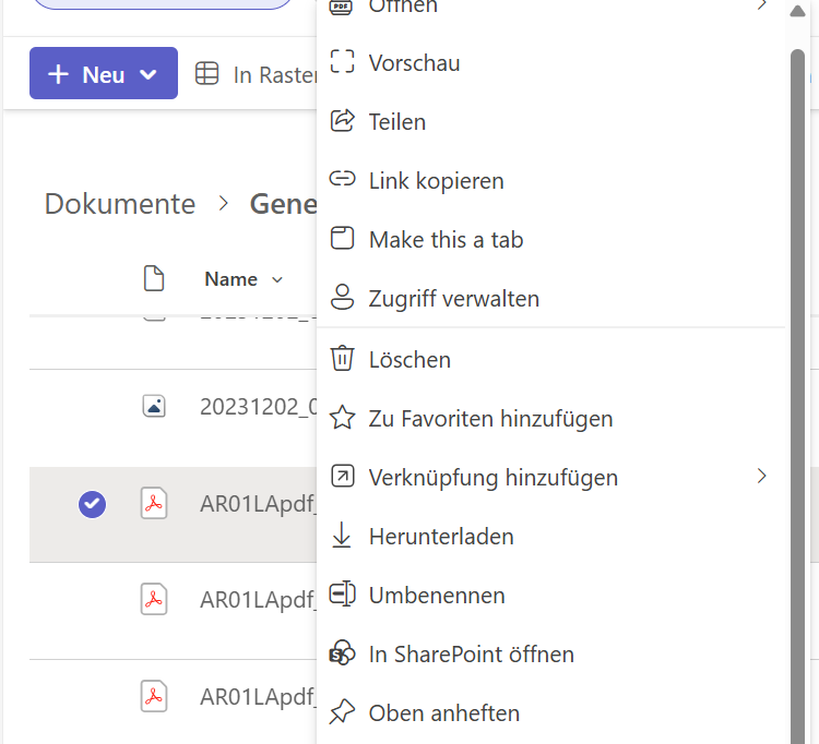 Gehen Sie hierzu auf die 3-Punkte neben dem Dateinamen und wählen Sie die Funktion Mak this a tab (Als Registerkarte hinzufügen) aus.