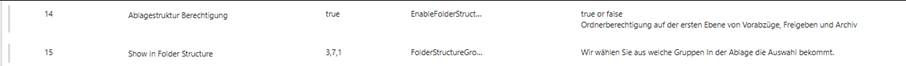 der Spalte Show in Folder Structure ist sichtbar, welchen