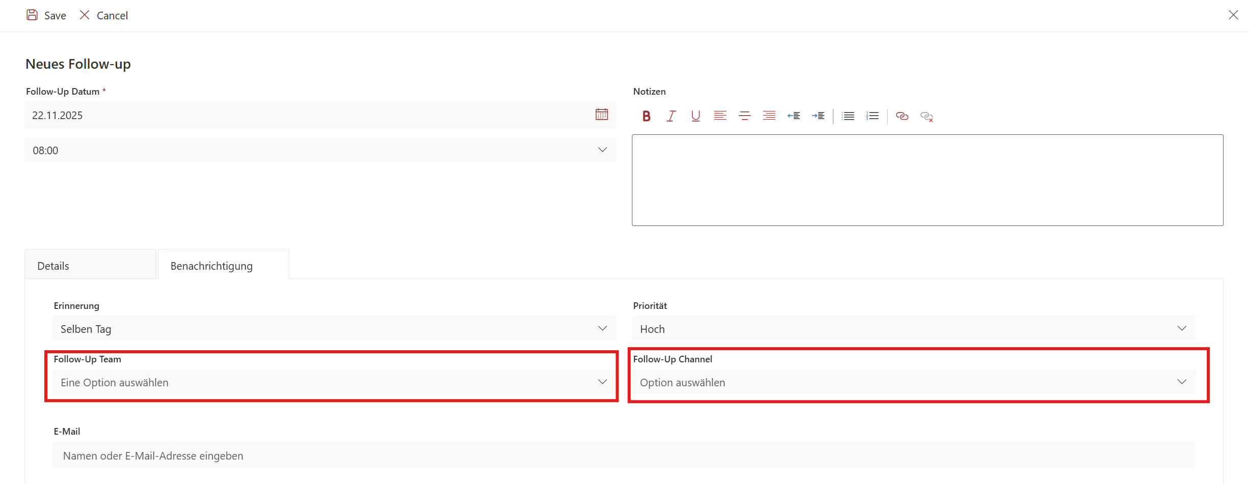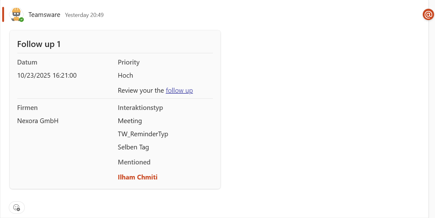 Ersteinrichtung der Microsoft Teams-Benachrichtigungen für Follow Ups im Kontaktmanagement