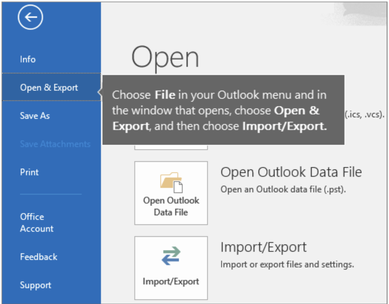 - Gehen Sie zu Datei > Öffnen & Exportieren > Importieren/Exportieren.