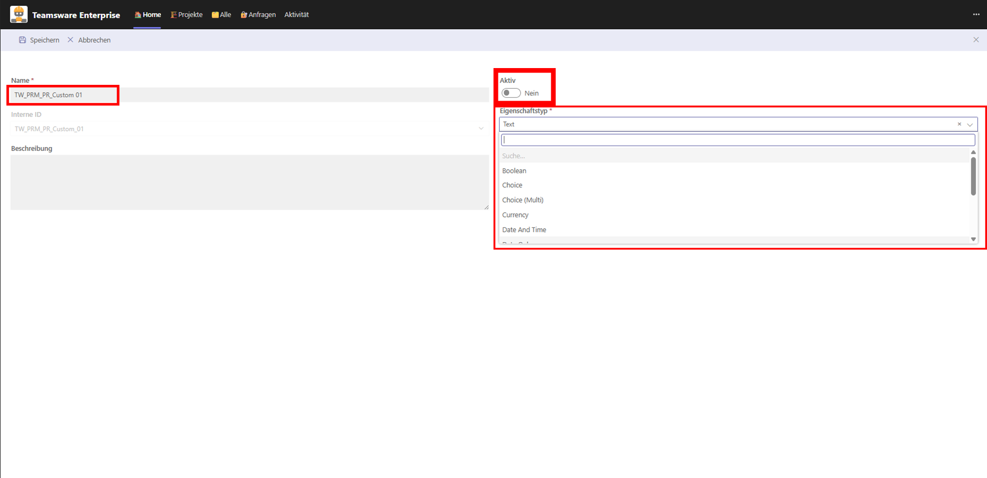 Um ein bestehendes Feld zu ändern, markieren Sie den entsprechenden Eintrag in der Liste und klicken Sie auf Bearbeiten. In der Detailansicht können Sie folgende Einstellungen vornehmen: