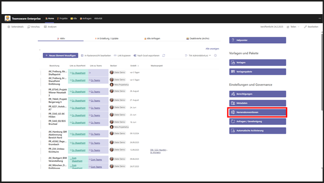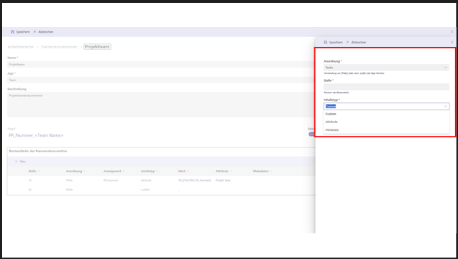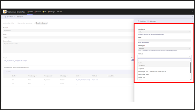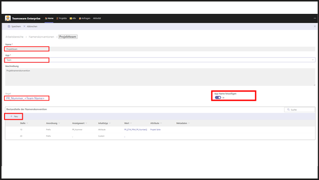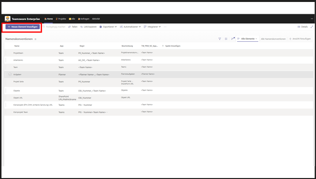 Wichtig: Jede Namenskonvention ist einer App zugeordnet (Teams, Planner, SharePoint-Seite). Das ist entscheidend, da jede App eine eigene Namenskonvention benötigt.