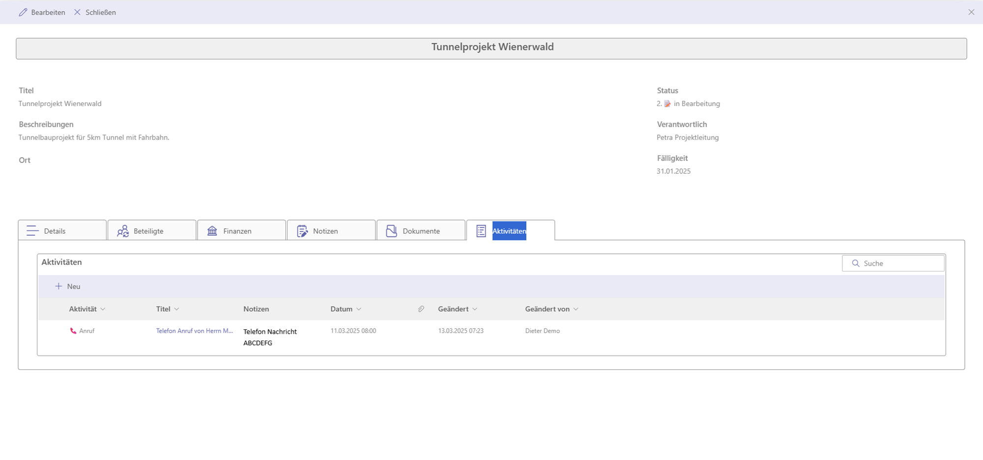 - Aktivitäten: Dokumentiere Telefonnotizen, Termine und weitere Ereignisse und verfolge diese nach.