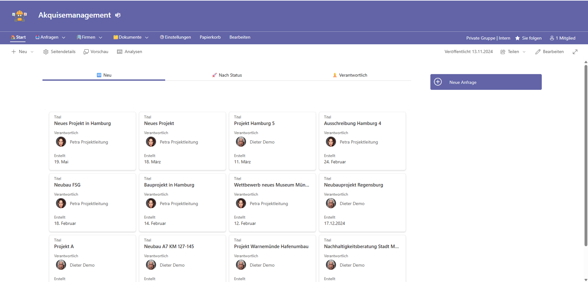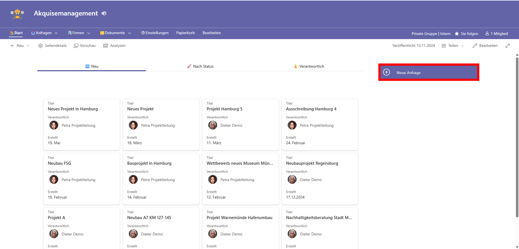- Zentrale Anfragenliste für alle Projektanfragen.