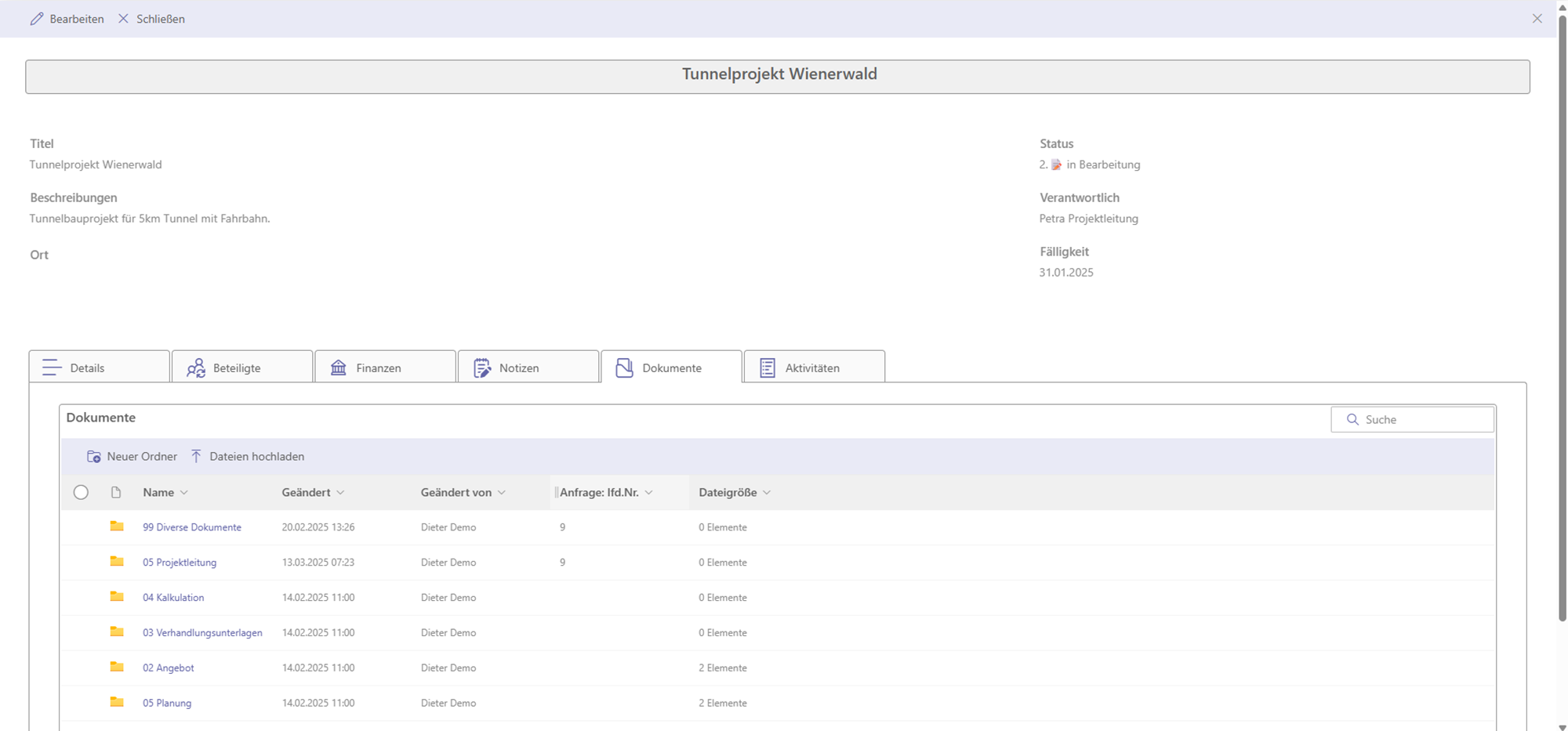 | Dokumente fehlen in der Ablage. | Sicherstellen, dass das Anfrage-Element gespeichert wurde – erst dann startet die automatische Ordnererstellung. |