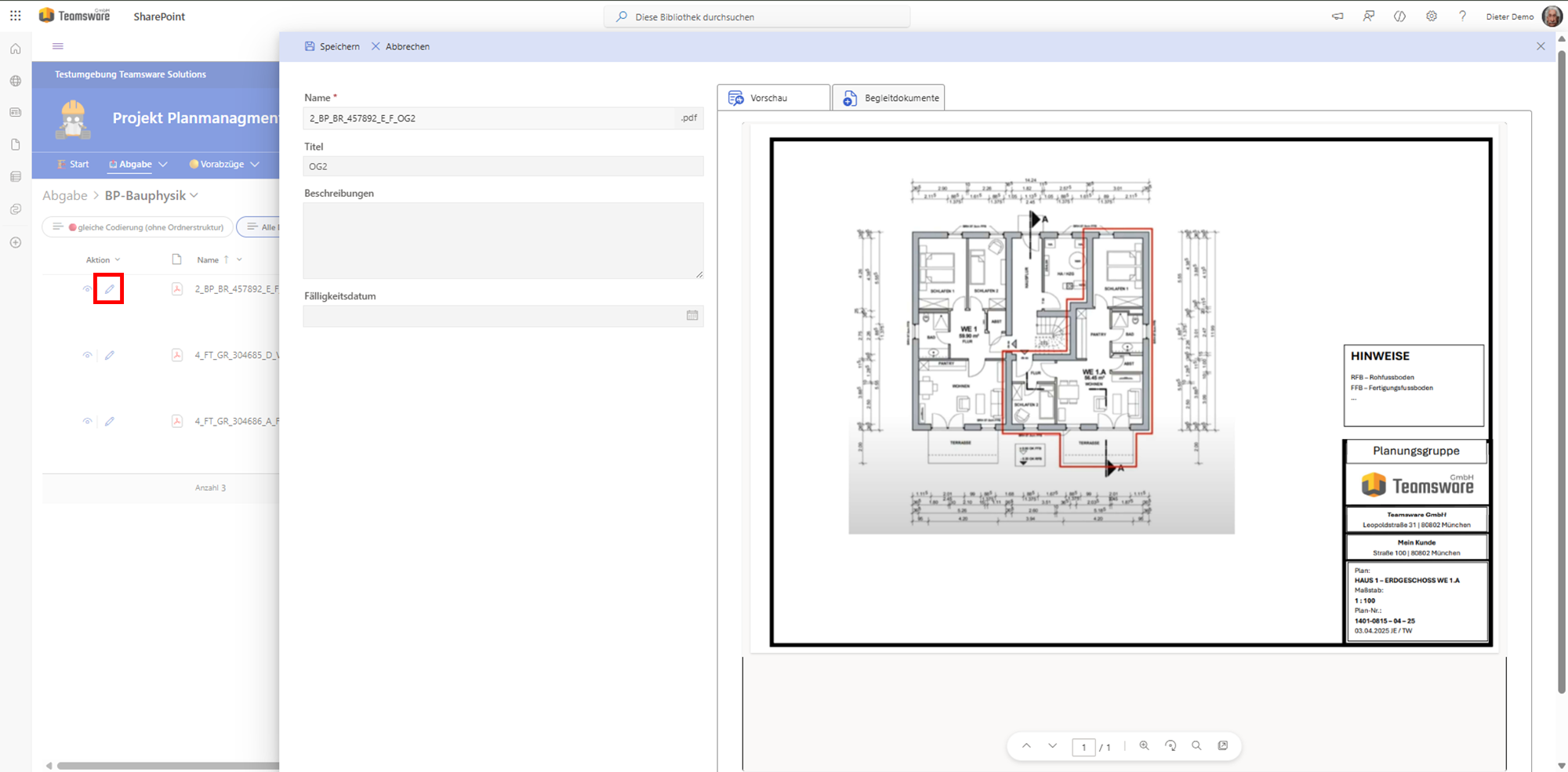 - Direkte Freigabe: Berechtigte Mitglieder können Pläne direkt in den Ordner „Freigabe“ verschieben.