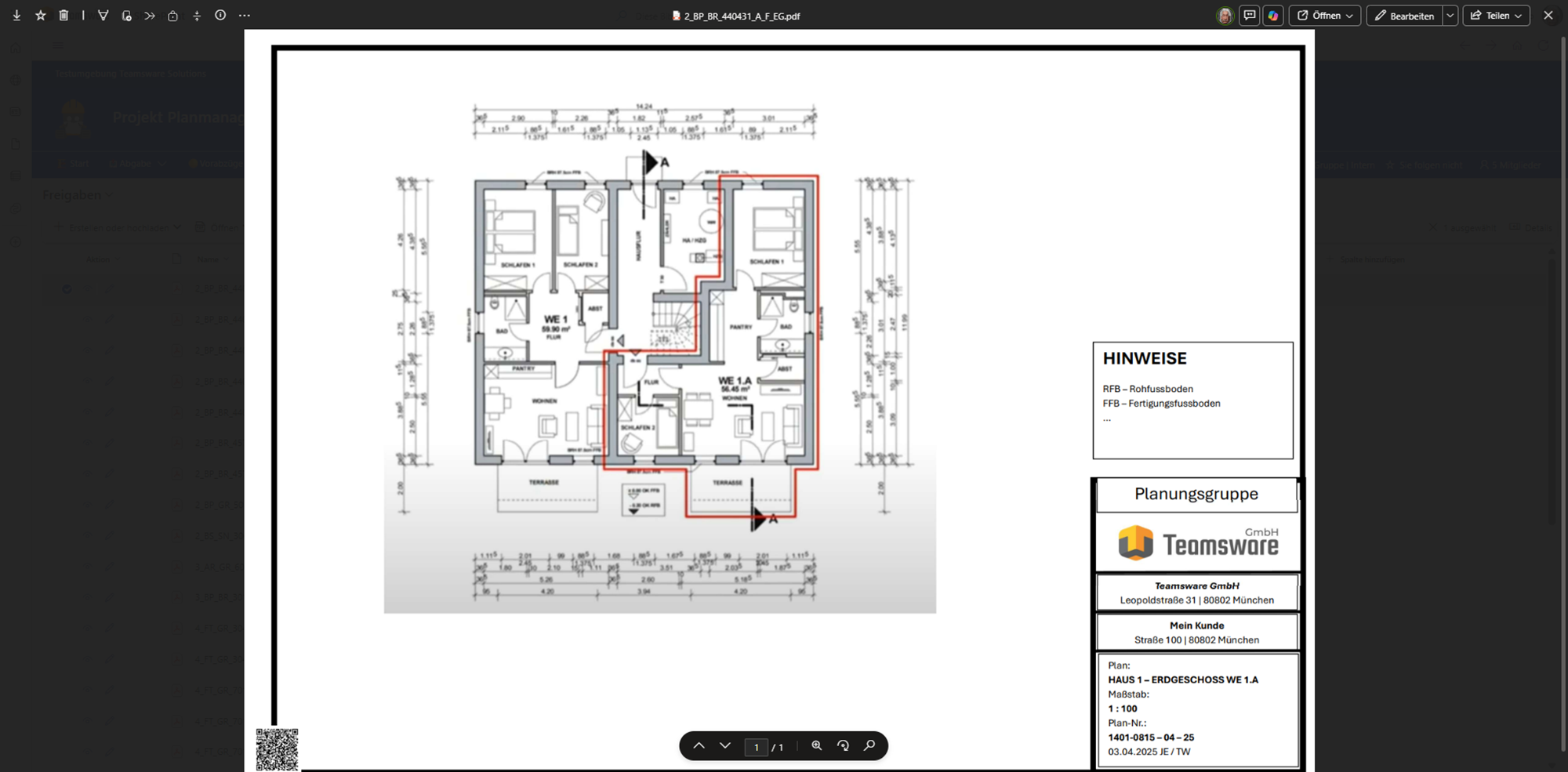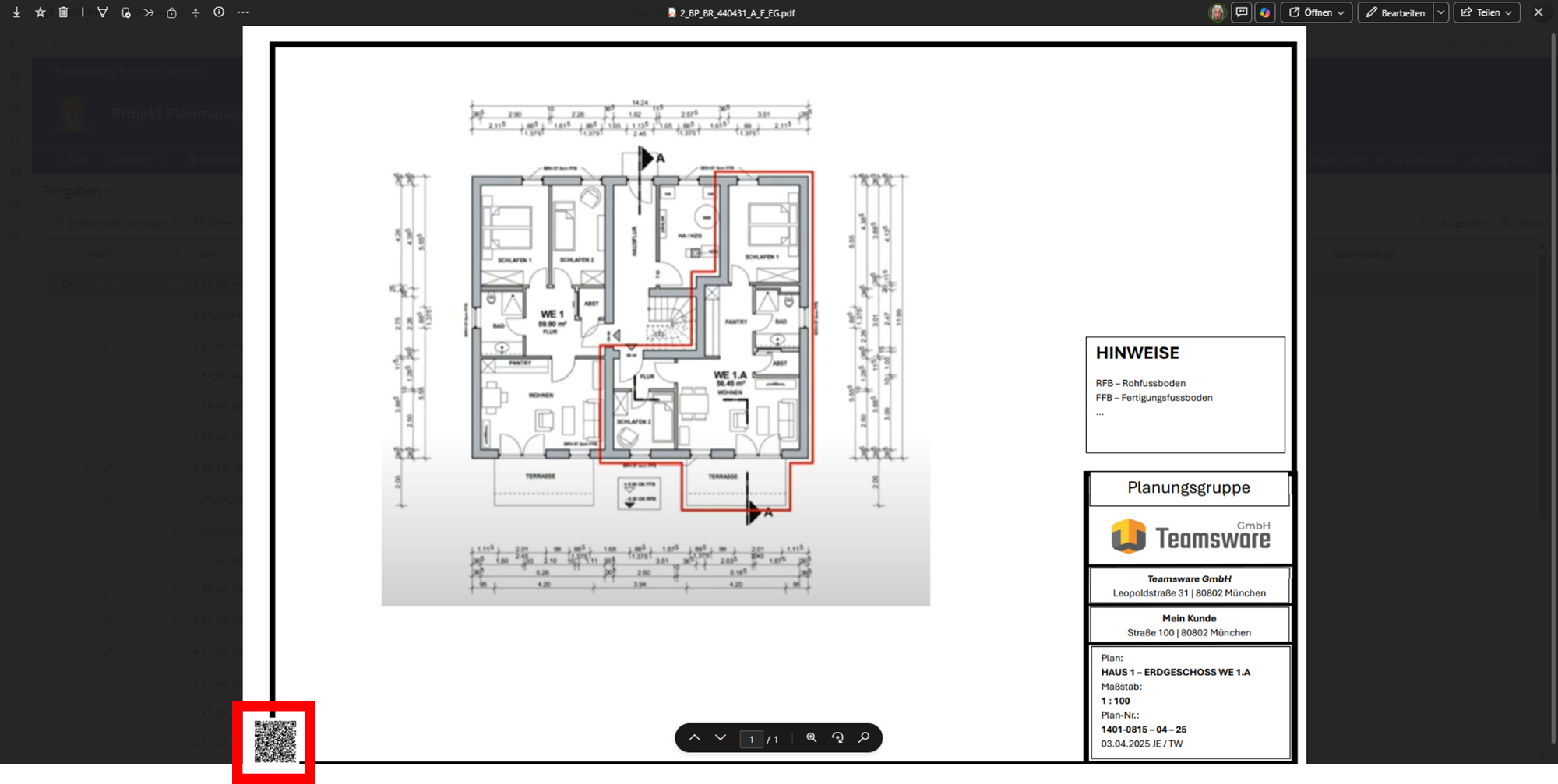 - Platzierung: Der QR-Code befindet sich automatisch unten links auf dem Plan, sobald dieser im Freigabe-Ordner liegt.