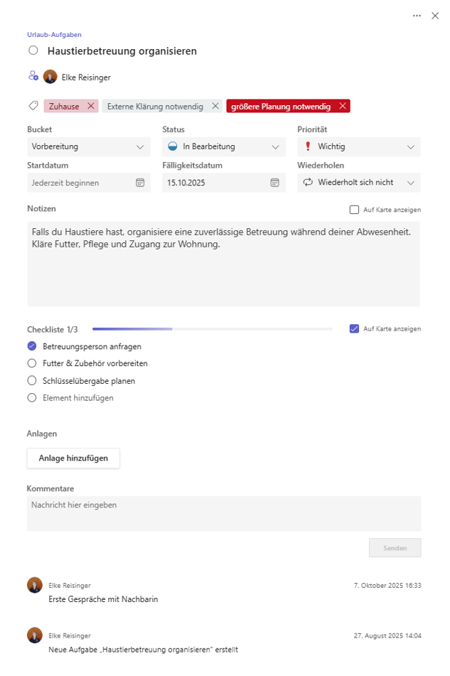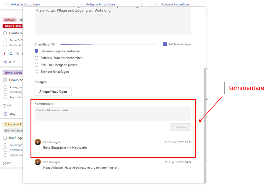 💬 Zusammenarbeit durch Kommentare, Anhänge & Checklisten