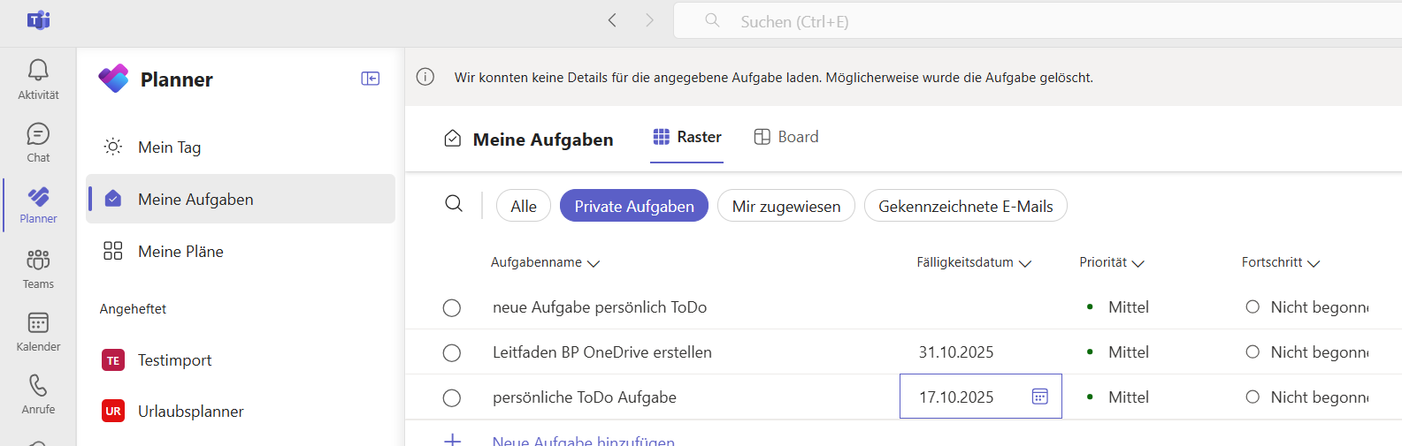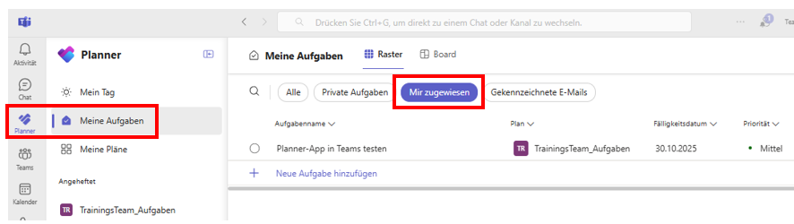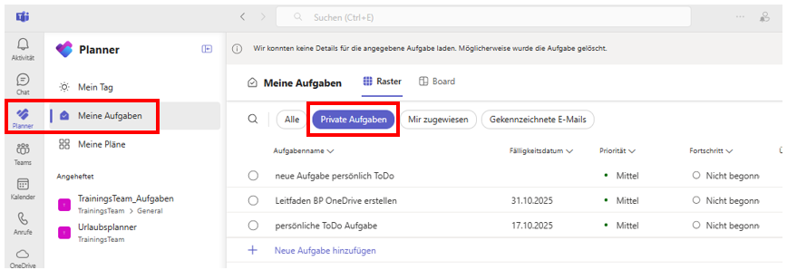 Deine persönlichen Microsoft To Do Aufgaben hast du auch in MS Teams links in der Planner-App unter Private Aufgaben.