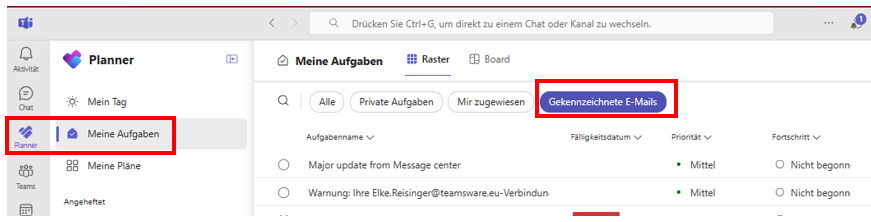 Hier findest du alle Aufgaben aus Microsoft ToDo, Planner und Outlook (gekennzeichnete E-Mails) übersichtlich an einem Ort – direkt in Microsoft Teams.