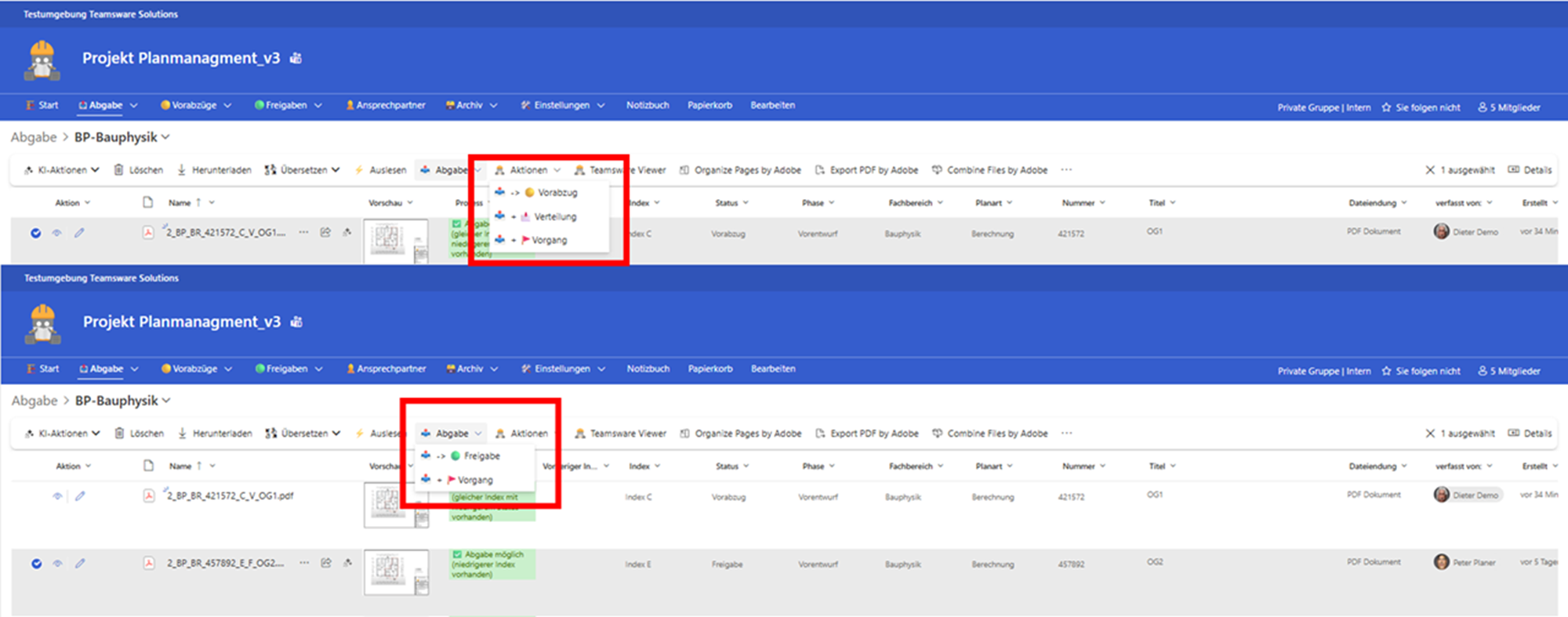 Dieser Artikel erklärt, wie Sie im Planmanagement V3 Freigabeprozesse initiieren, Prüfer zuweisen und den Status Ihrer Pläne vom „Vorabzug“ bis zur finalen „Freigabe“ steuern.