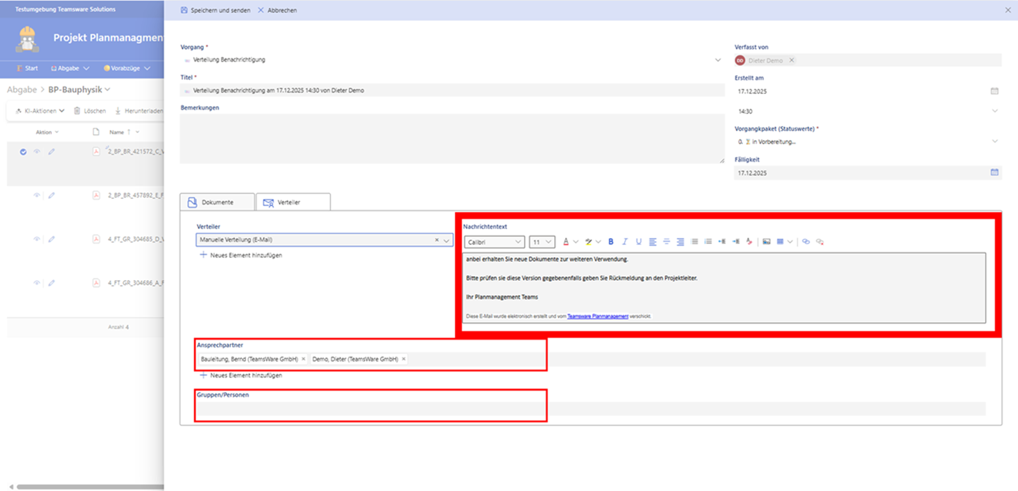 - Vorgang/Prüfer: Wählen Sie die Person aus, die den Plan genehmigen muss (z. B. Projektleiter oder Fachplaner). Alternativ können vordefinierte Workflow-Ketten genutzt werden.