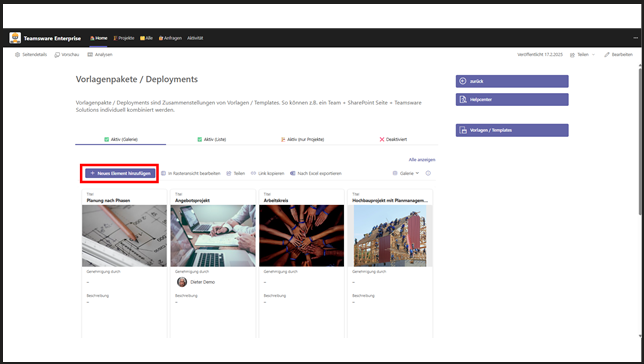 Vorlagen (Teams, SharePoint, Planner usw.) hinzufügen und miteinander