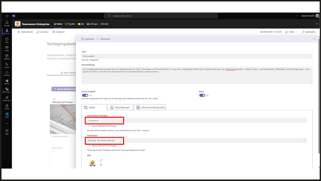 Teamstruktur, Metadaten und Berechtigungen automatisiert anzulegen.