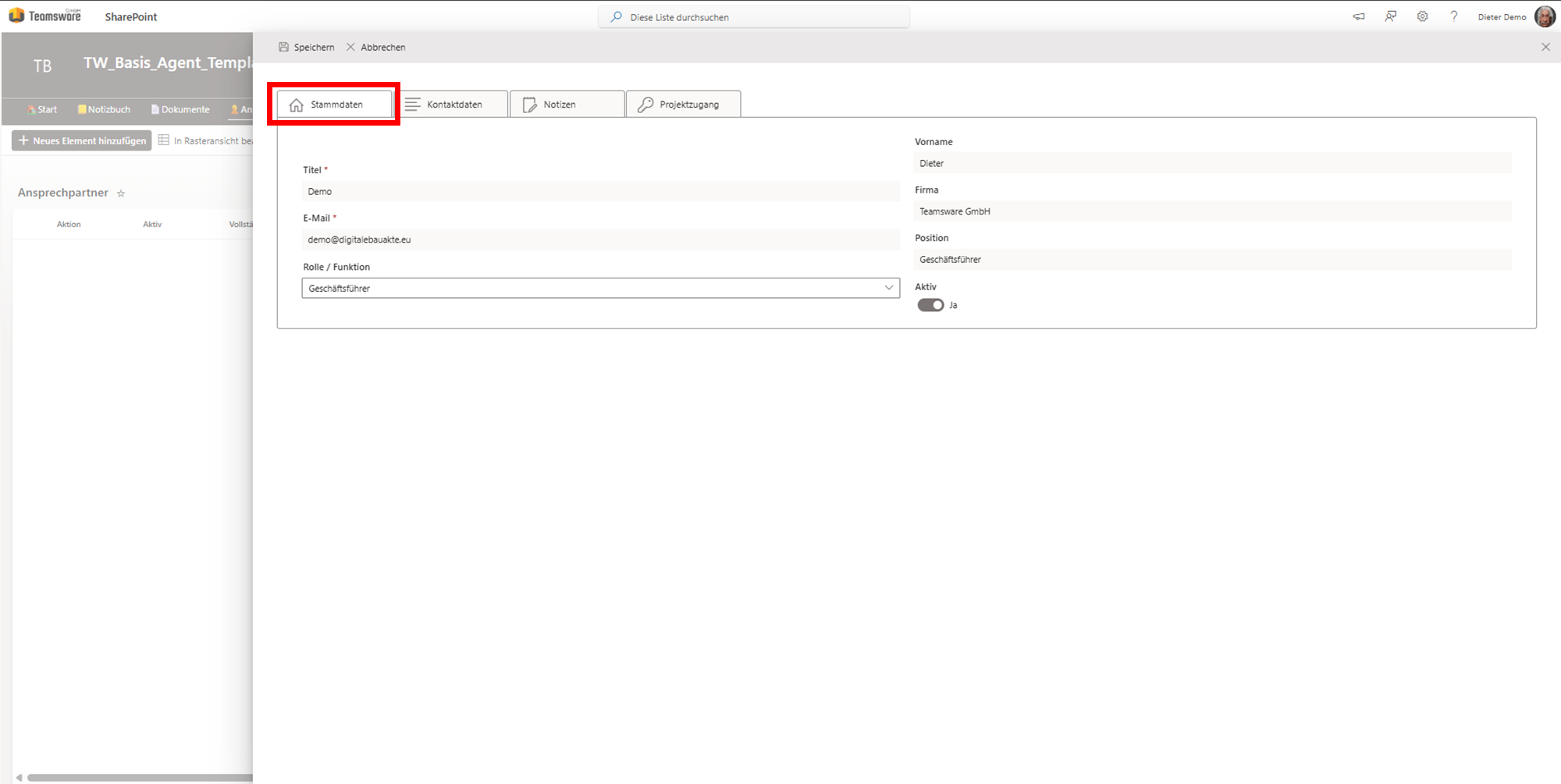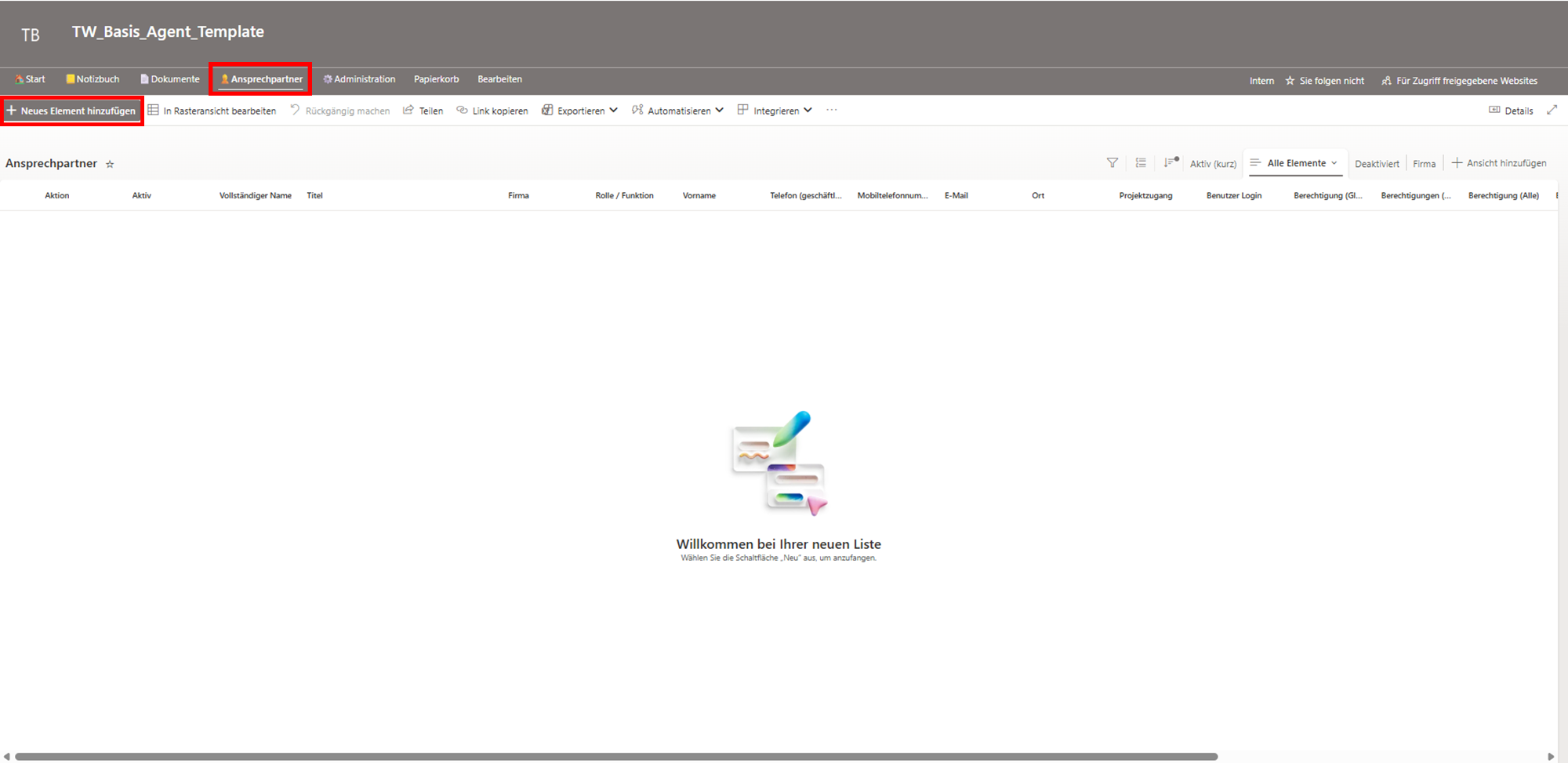 The Contact List is the central tool in Teamsware projects for managing project participants and controlling technical access rights to project resources (SharePoint, M365 groups).